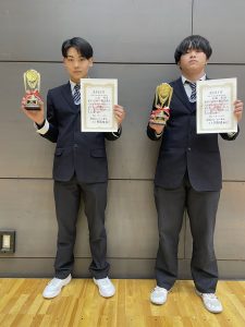 2026年1月24日にアミノバリューホールで令和7年度徳島県バレーボール協会表彰式が開催され、3年機械コース江本博喜さん、3年情報コース美濃胤博さんが優秀選手賞を受賞しました。江本さんは、徳島県代表選手に選出され、国スポ四国予選に出場し、アウトサイドヒッターとして活躍しました。美濃さんは、本校バレーボール部の主将およびセッターとして、チームを牽引し、全日本高等学校バレーボール選手権大会徳島県予選会第3位に大きく貢献しました。