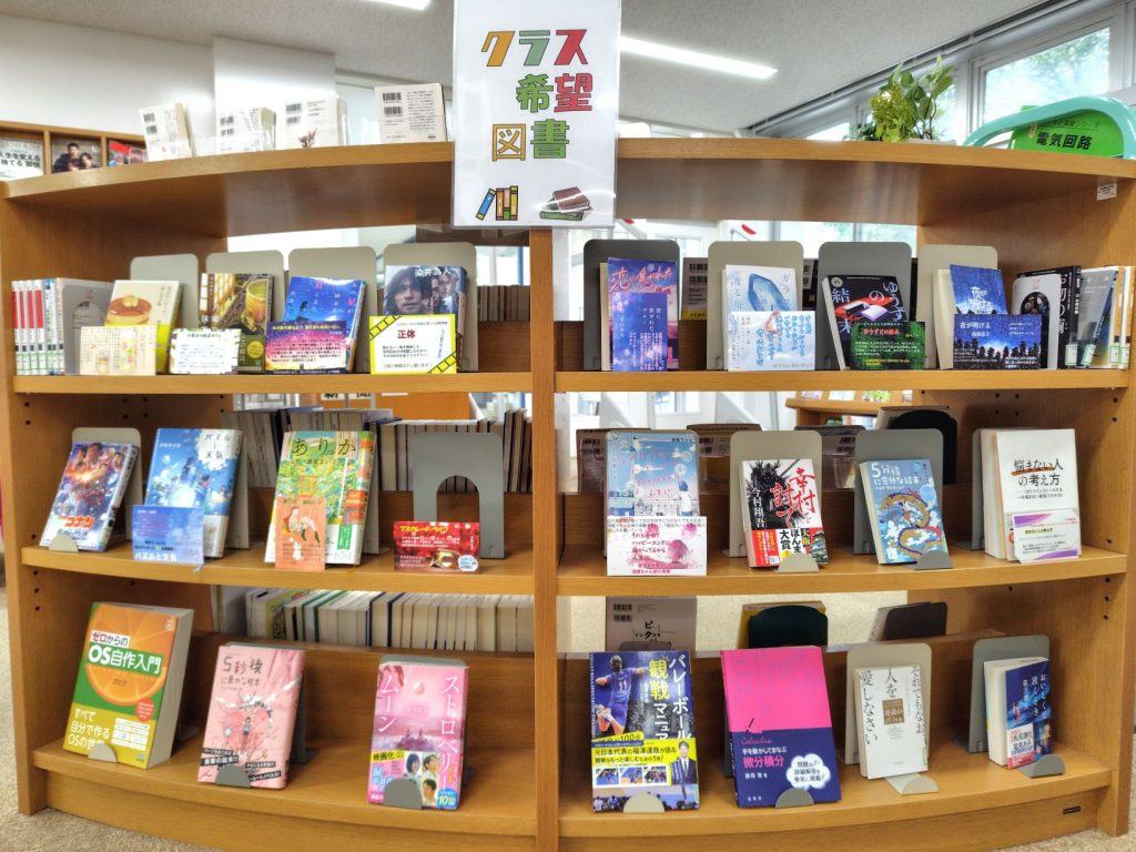 各クラスの学生図書委員が選書してくれた図書を展示しています。本選びの参考になりますよ。