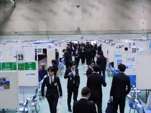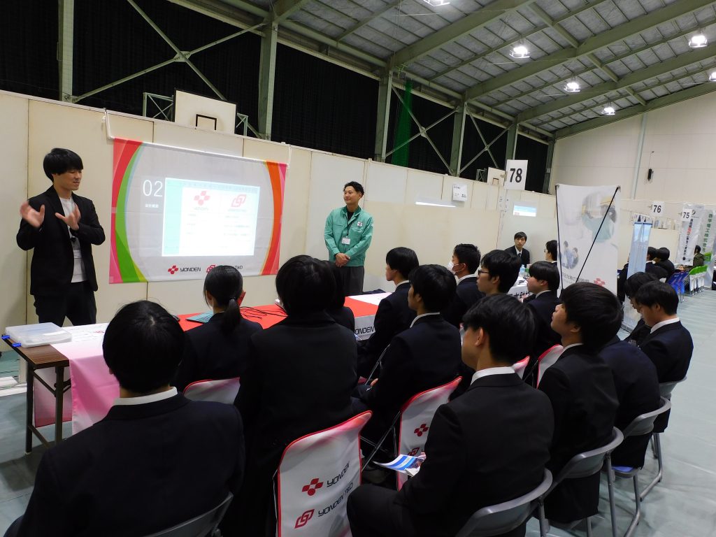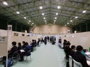 両日とも、午前・午後の2部制で、会場に用意した企業ブースがすべて埋まり、県内外から参加した企業の各ブースに、450名以上の学生が訪問し、担当者の説明に熱心に耳を傾けたり、積極的に質問を行うなど、実りのあるセミナーとなりました。
