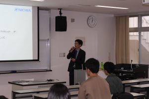 質疑応答では、「公の場で発表されたアイデアを利用する場合の問題点」や「海外特許・商標の範囲」など、実践的な質問が多数寄せられ、活発な議論が行われました。受講した学生たちは、企業における知財保護の重要性や、社会と関わる創造的な活動の意義について理解を深め、今後のキャリア形成に向けて大きな学びを得る機会となりました。