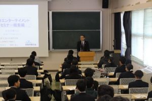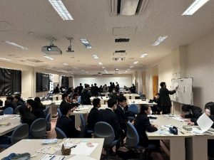 2026年1月22日(木)、創造技術工学科1年生対象に日本弁理士会と連携した知的財産セミナーを開催しました。セミナーには日本弁理士会 豊栖 康司 弁理士、岸本 智久 弁理士、西本 泰造 弁理士、丹生 哲治 弁理士、上田 精一 弁理士、阿出川 豊 弁理士をお招きし、知的財産に関する基本的な講演と演習を実施しました。