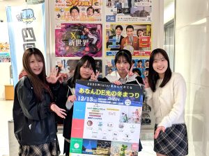 写真は、先日12月5日に「ゴジカル!週末イベントPR合戦」イベント告知した様子と、設置中のLEDイルミネーション、ワークショップで作製予定の製作物です。