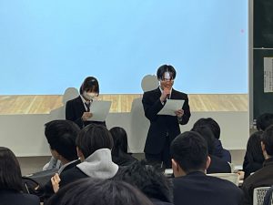 2025年12月12日(金)、本科3年生を対象に、男女共同参画推進取り組みの一環として、デートDV防止セミナーを開催しました。講師にHYGGE共同代表アウェア認定ファシリテーターの高山直子氏をお招きし、「デートDVをするひとにもされるひとにもならないために」と題してご講演いただきました。講演では、デートDVの概要、デートDV・DVを取り巻く現状、暴力の種類、そして相手を尊重する態度について、スライドに加え事例動画を用いながら、具体的で分かりやすい説明をしていただきました。さらに、学生によるロールプレイを通じて、「自分らしさ」を大切にすることや、相手を尊重するコミュニケーションのあり方を、体験的に学ぶ機会となりました。