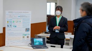 当日は、午前に90秒で研究概要を紹介するショートオーラルセッション、午後にポスターやデモで研究内容をより詳しく発表するフリースタイルセッションがそれぞれ実施されました。四国の各県から大学院生を中心とした発表者が集まる中、高専の本科生の発表者は阿南高専情報コースのみでした。